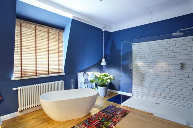 Hofmanns对别墅最大的尊重在于,即使在房间的内部也保留了一些历史细节。 例如蓝色的墙壁与裸露木板的搭配。而有了地毯和植物,浴室也更显舒适。