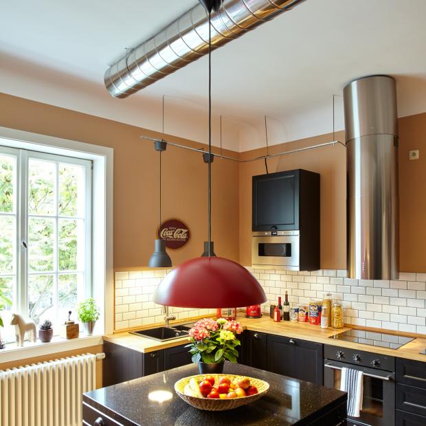 因为Katrin喜欢光线好的厨房,所以Hofmanns挑选了二楼阳面的位置作为厨房,并且选择了焦糖色来装饰。富有暖意的色彩也让食物更诱人,更能带动你的食欲。